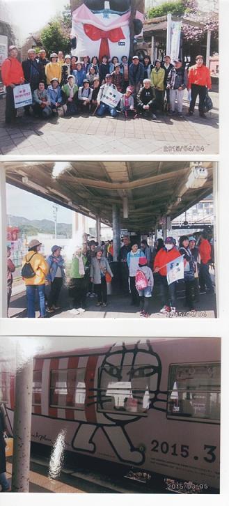 好天に恵まれ41名の参加のもと信楽高原鐡道を利用し、信楽方面のウォーキングを実施しました。JR貴生川駅から高原鐡道(ラッピング列車)に乗り信楽駅に着く間、車中から山間の緑、