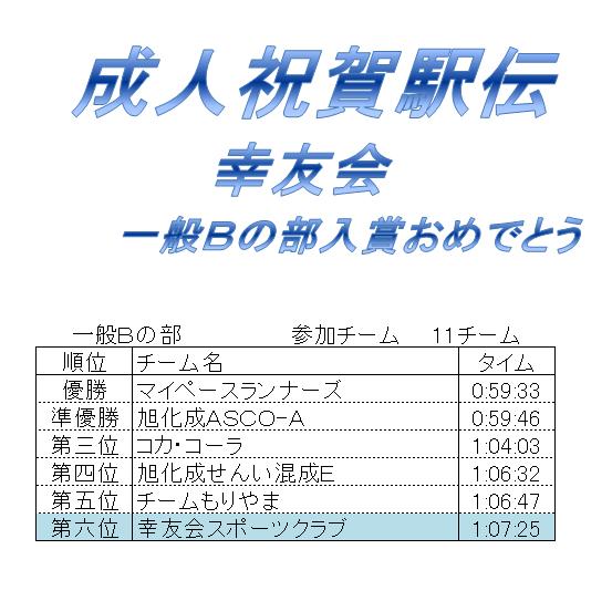 ホーム > 中洲わいわいクラブホーム > 活動報告 一覧 > 第40回 守山市成人祝賀駅伝大会結果