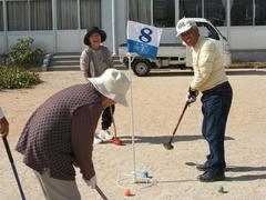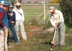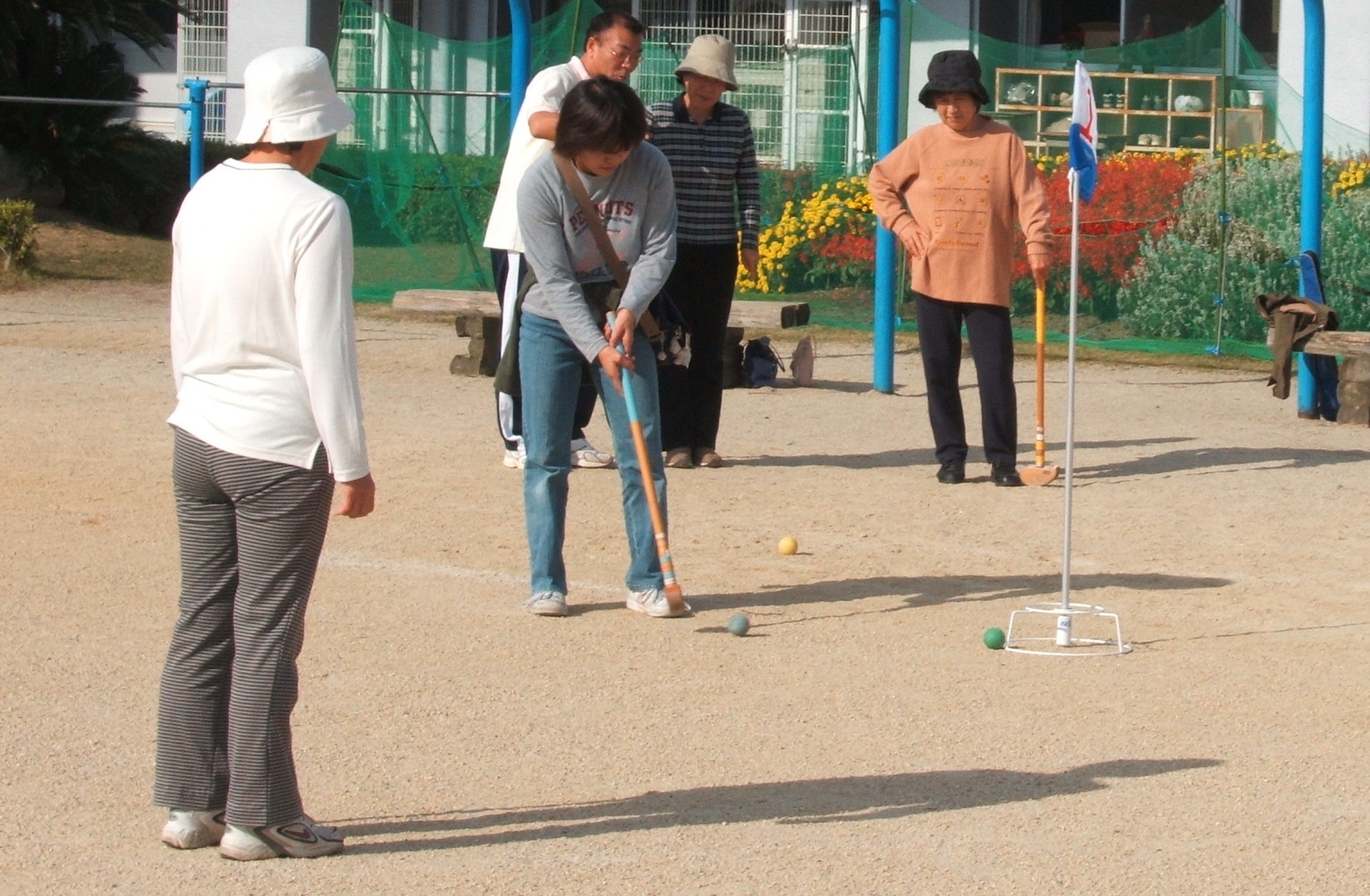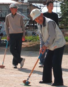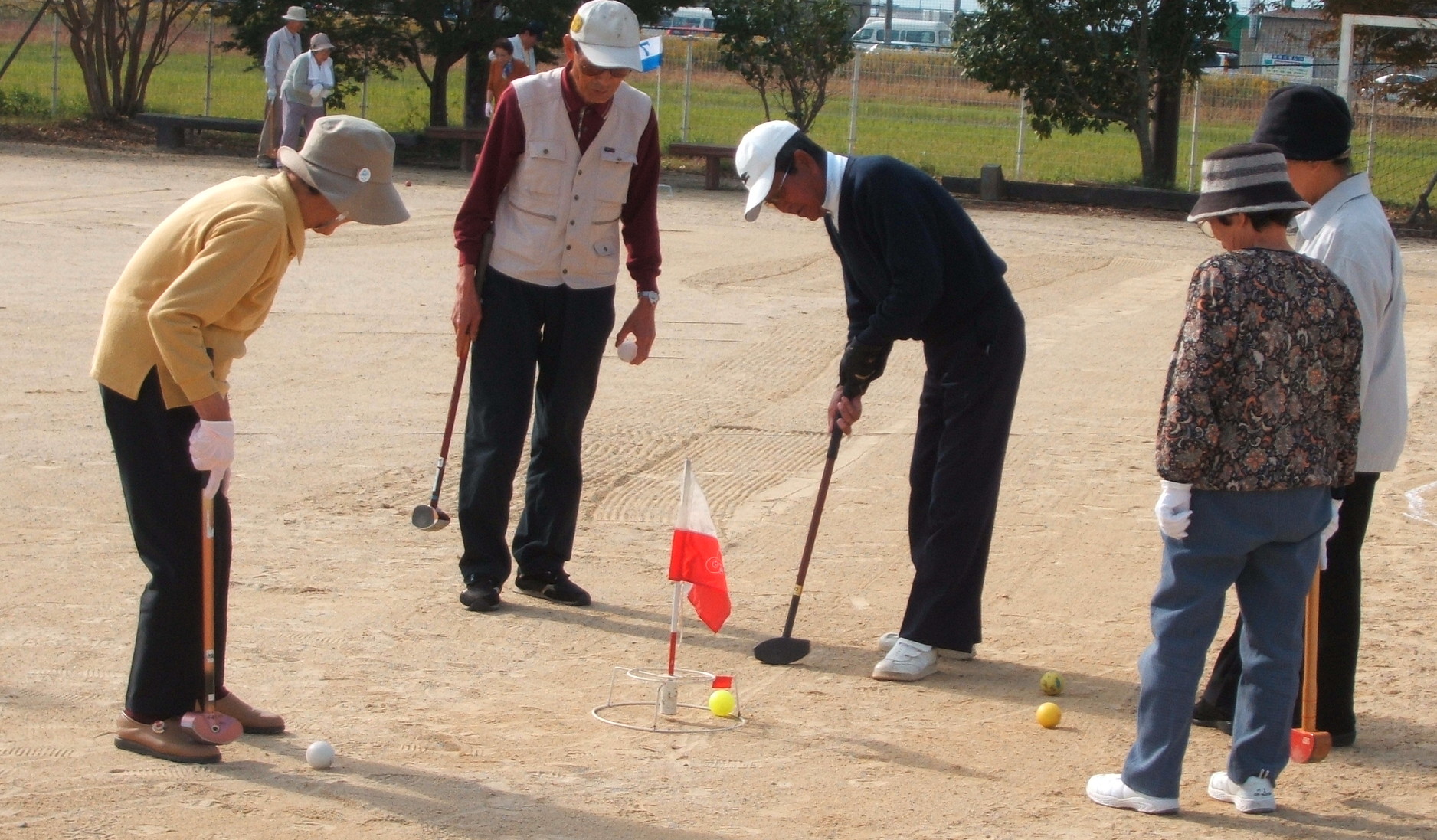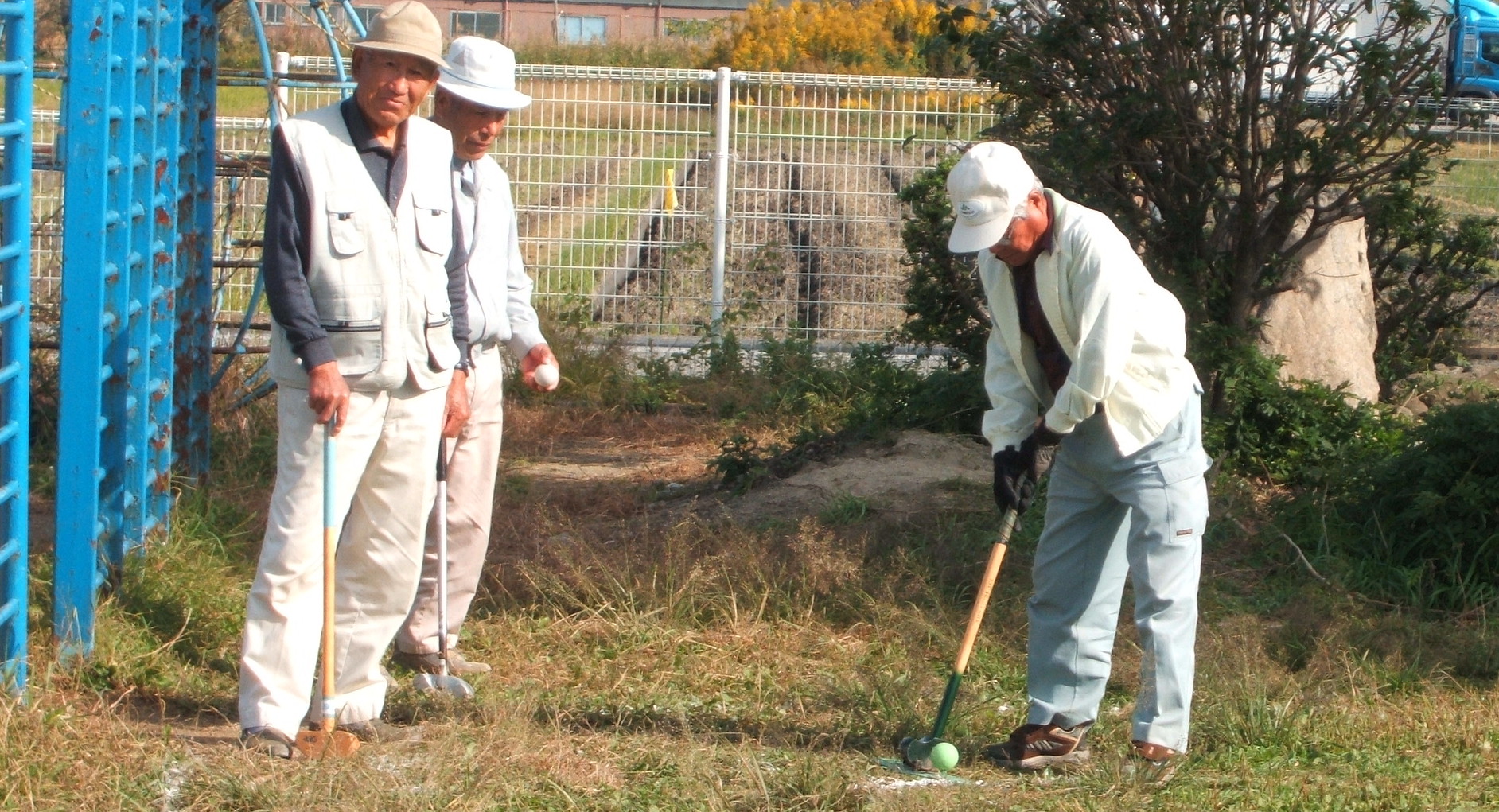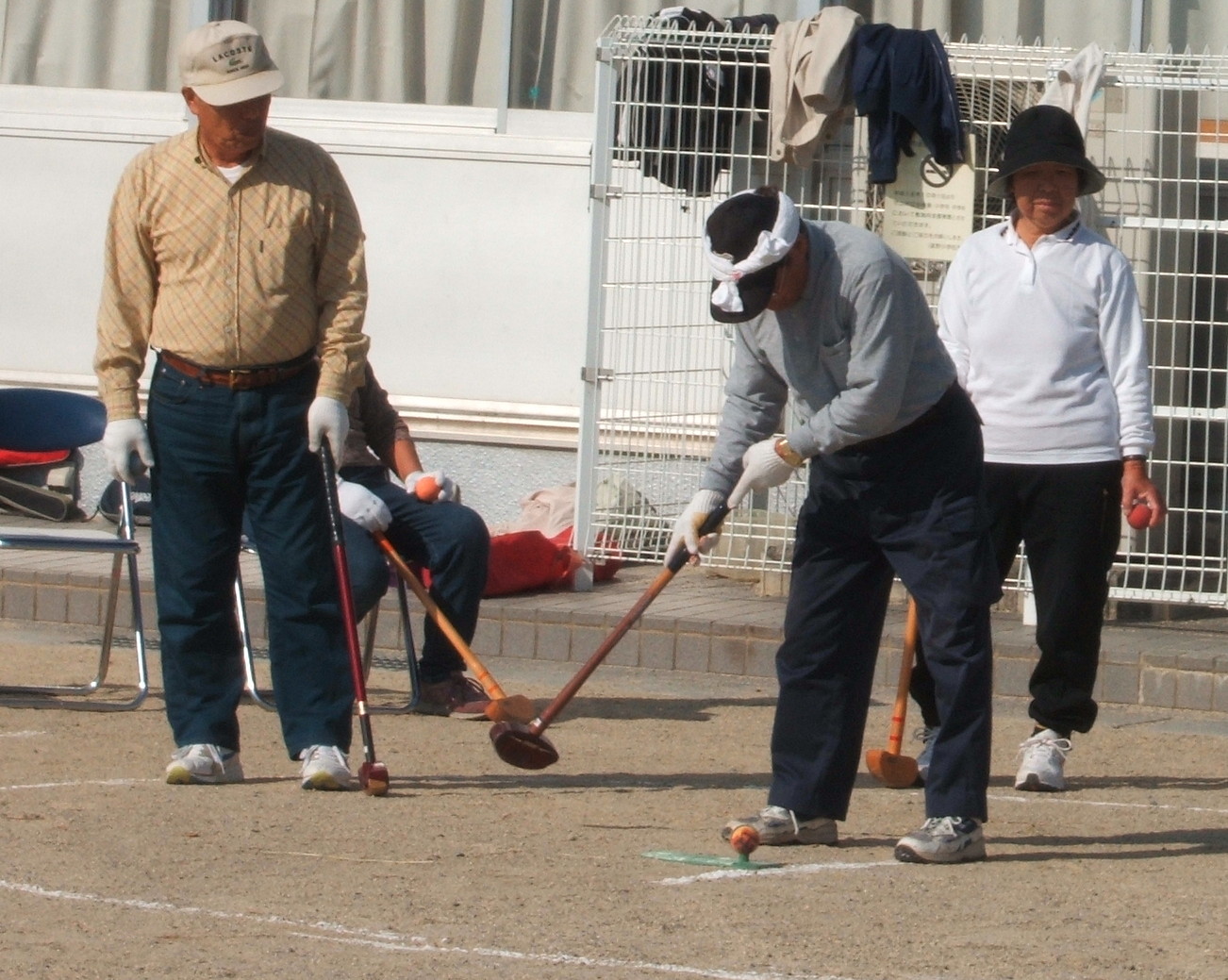 1部のグランドゴルフでは 高齢者を中心にホールインワンをめざす必死のプレイヤーから、グループでなごやかにラウンドされている人まで さまざまでした。