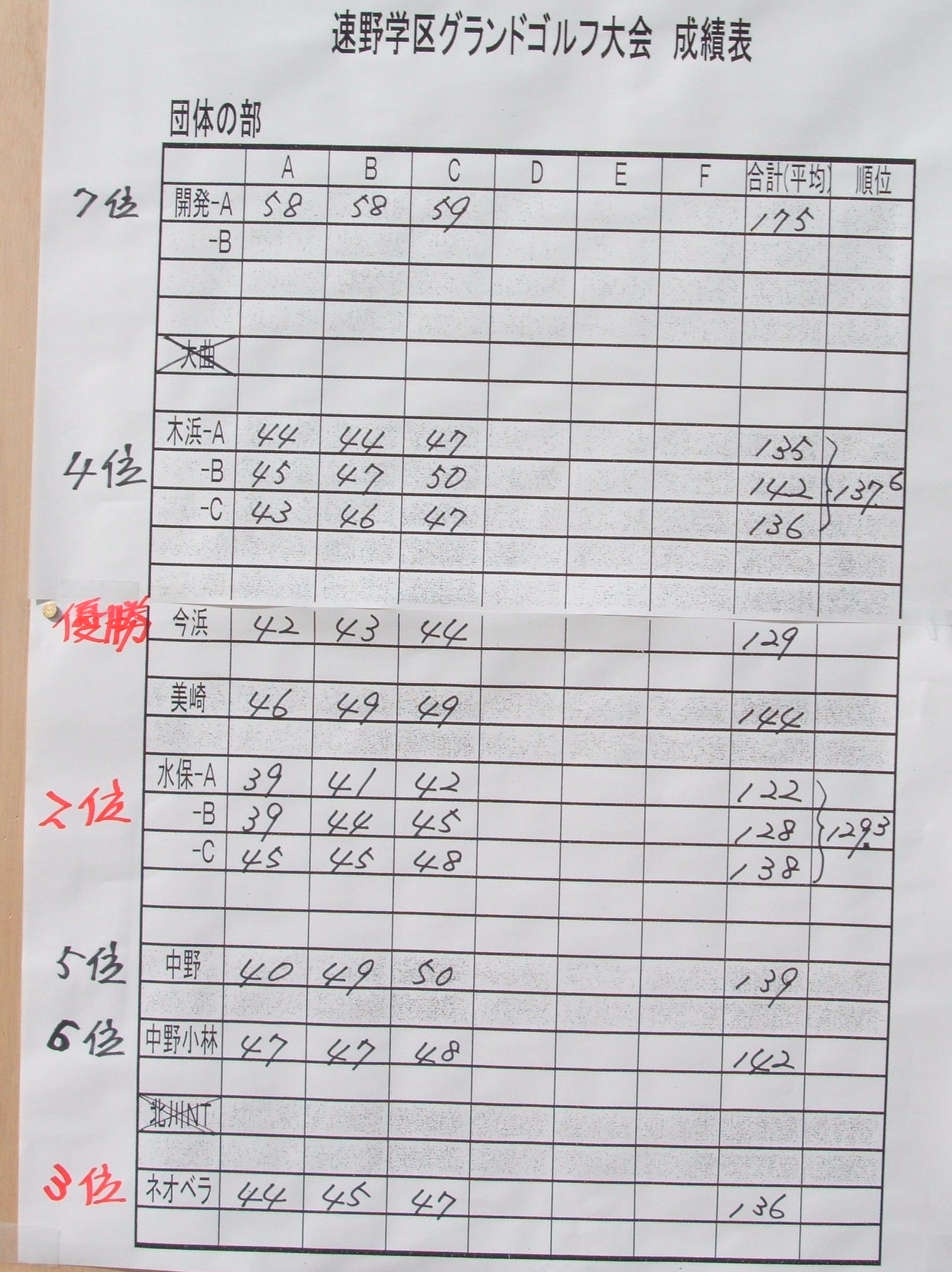 速野学区の予選を勝ち抜き出場されたチームは、それぞれ健闘され 優勝こそ逃したものの