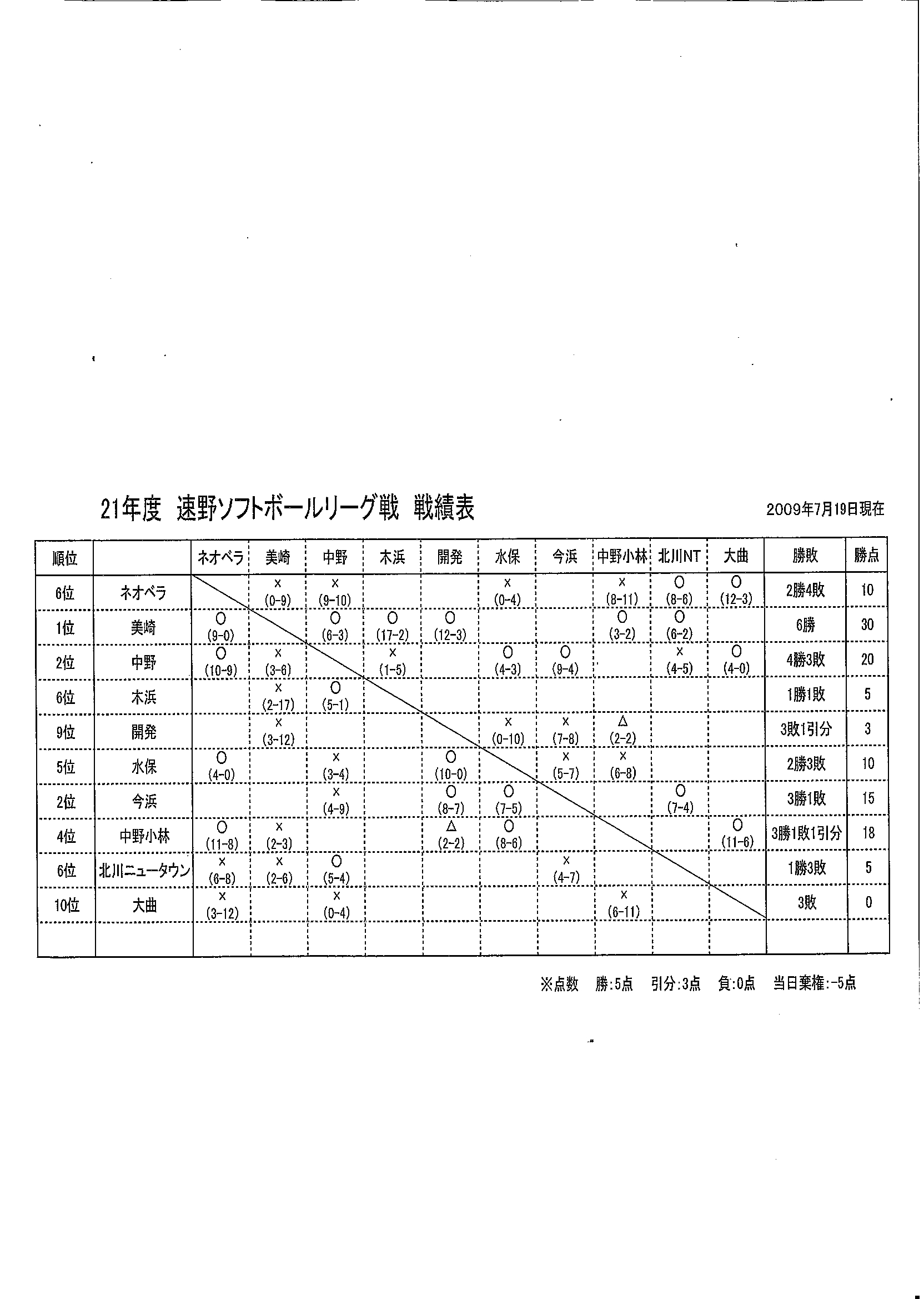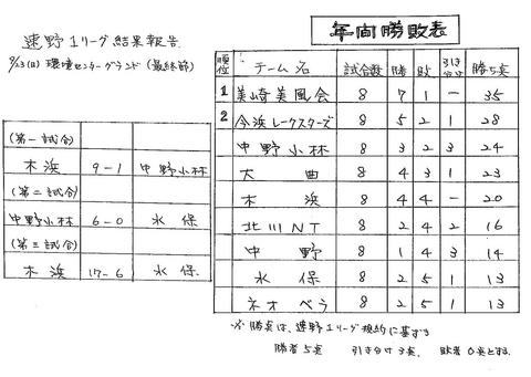 試合結果 優勝:今浜 第2位:水保 第3位:ネオベラ