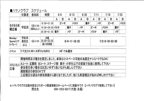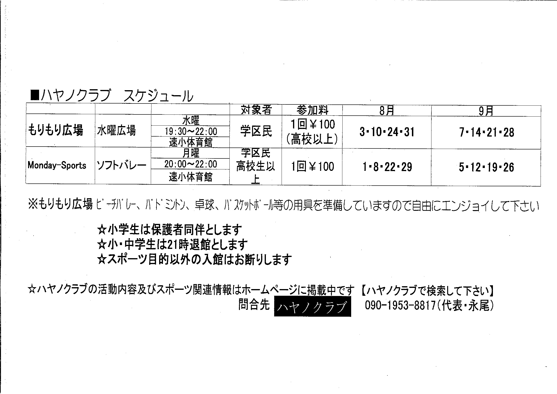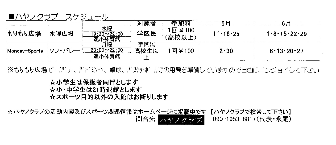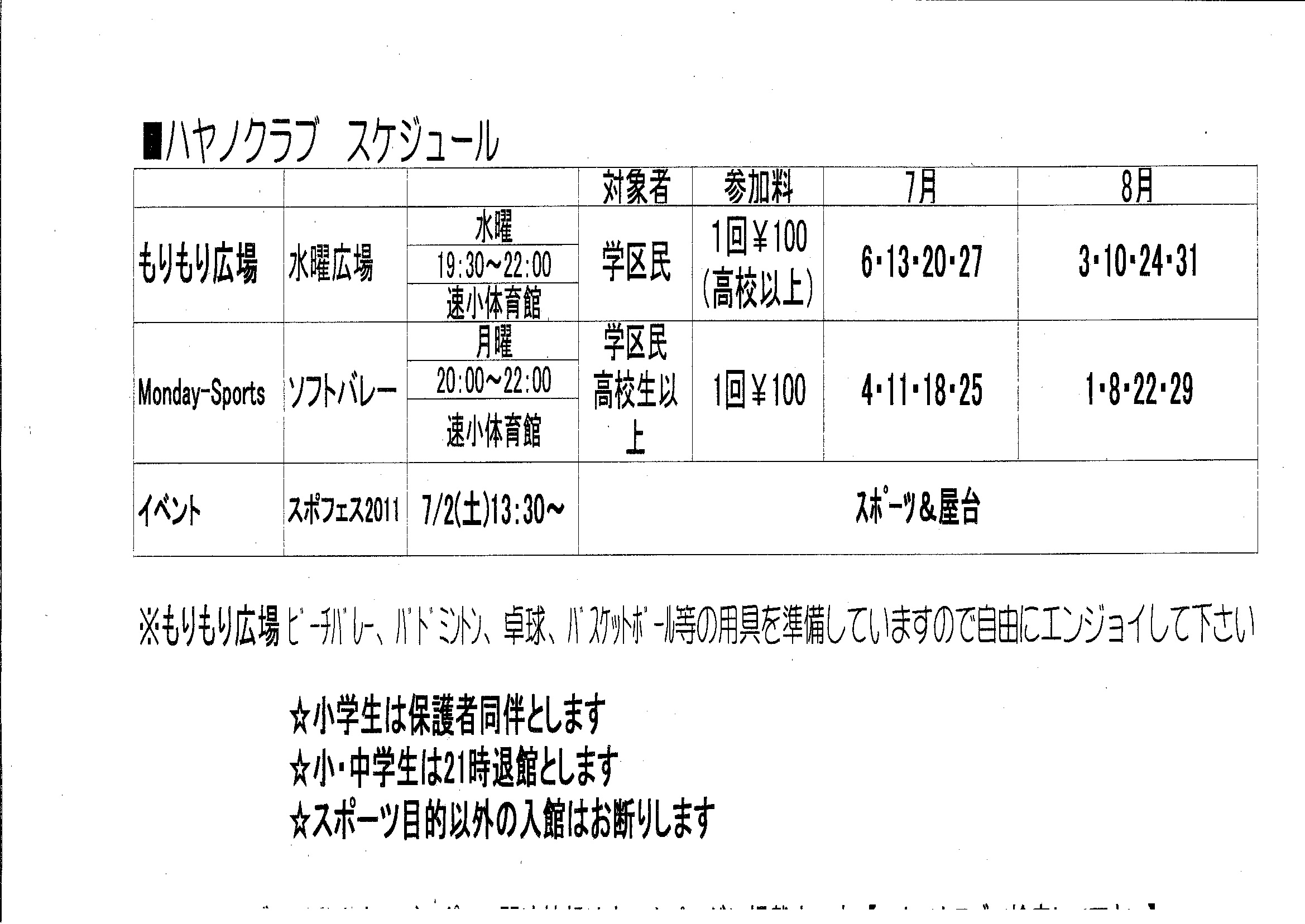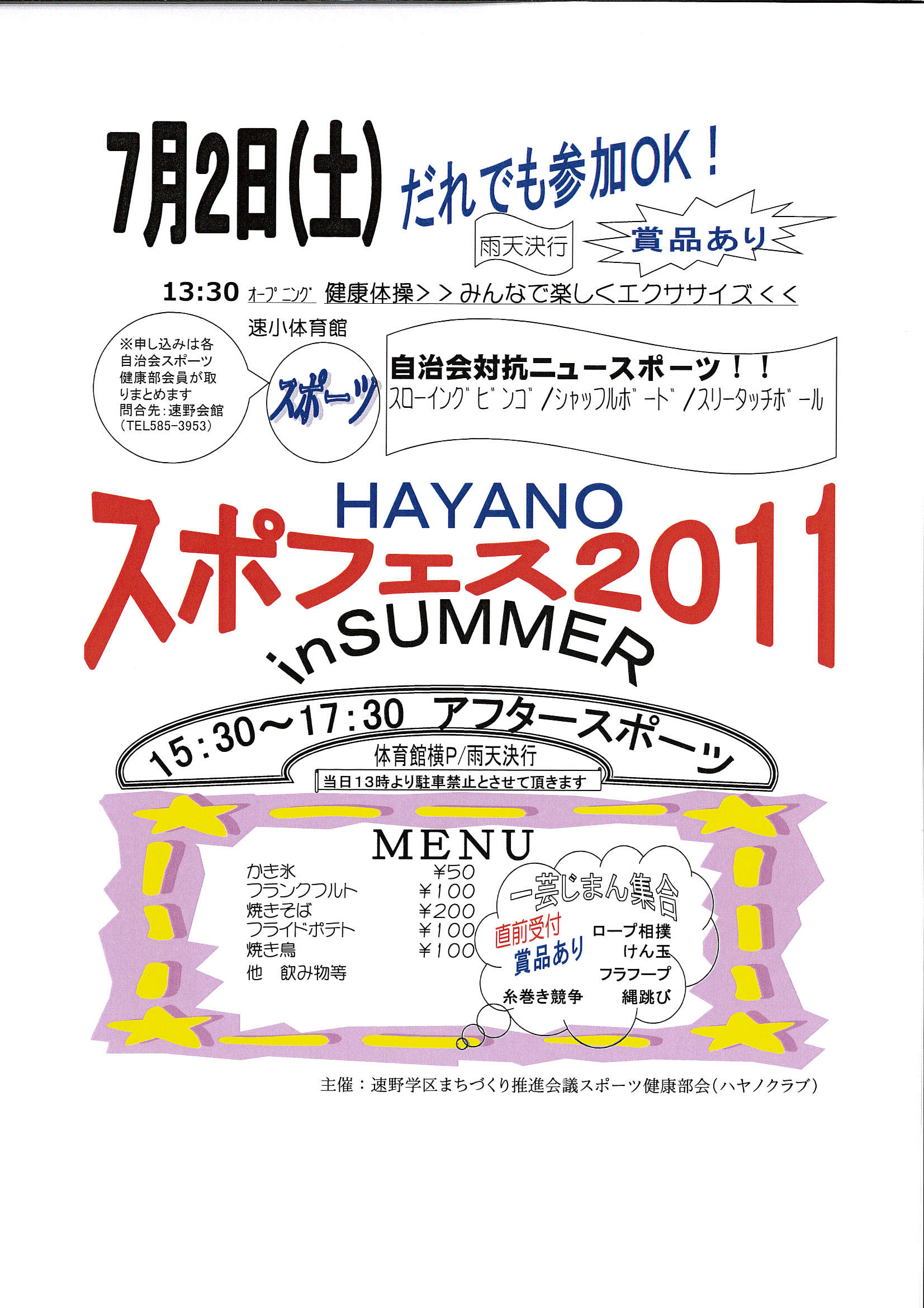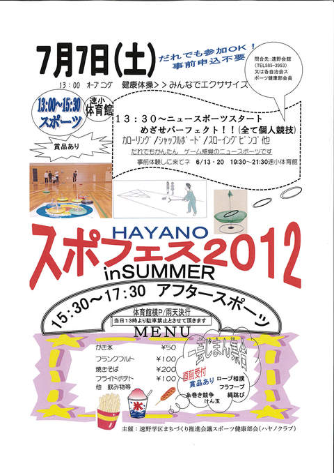 7月7日(土)13:00~速野小学校体育館&グランドにて