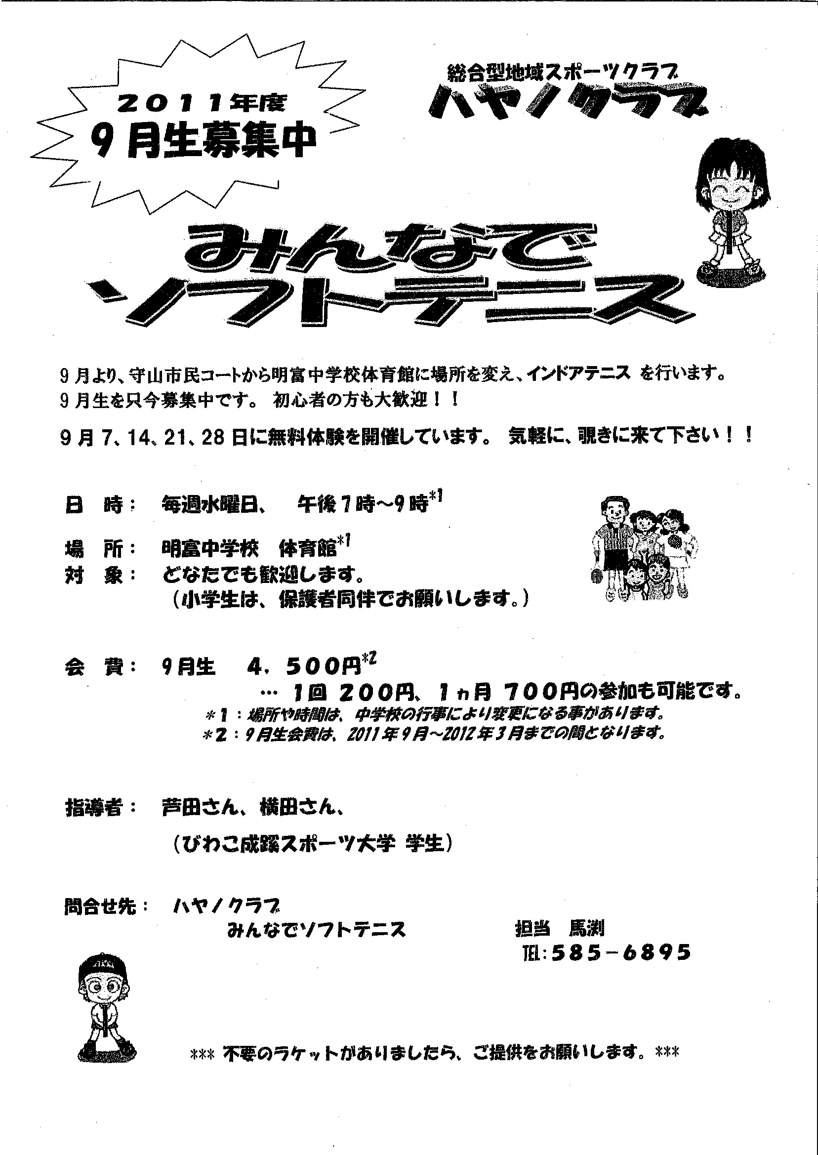 ◆◆みんなでソフトテニス・・・秋からはじめてみませんか◆◆