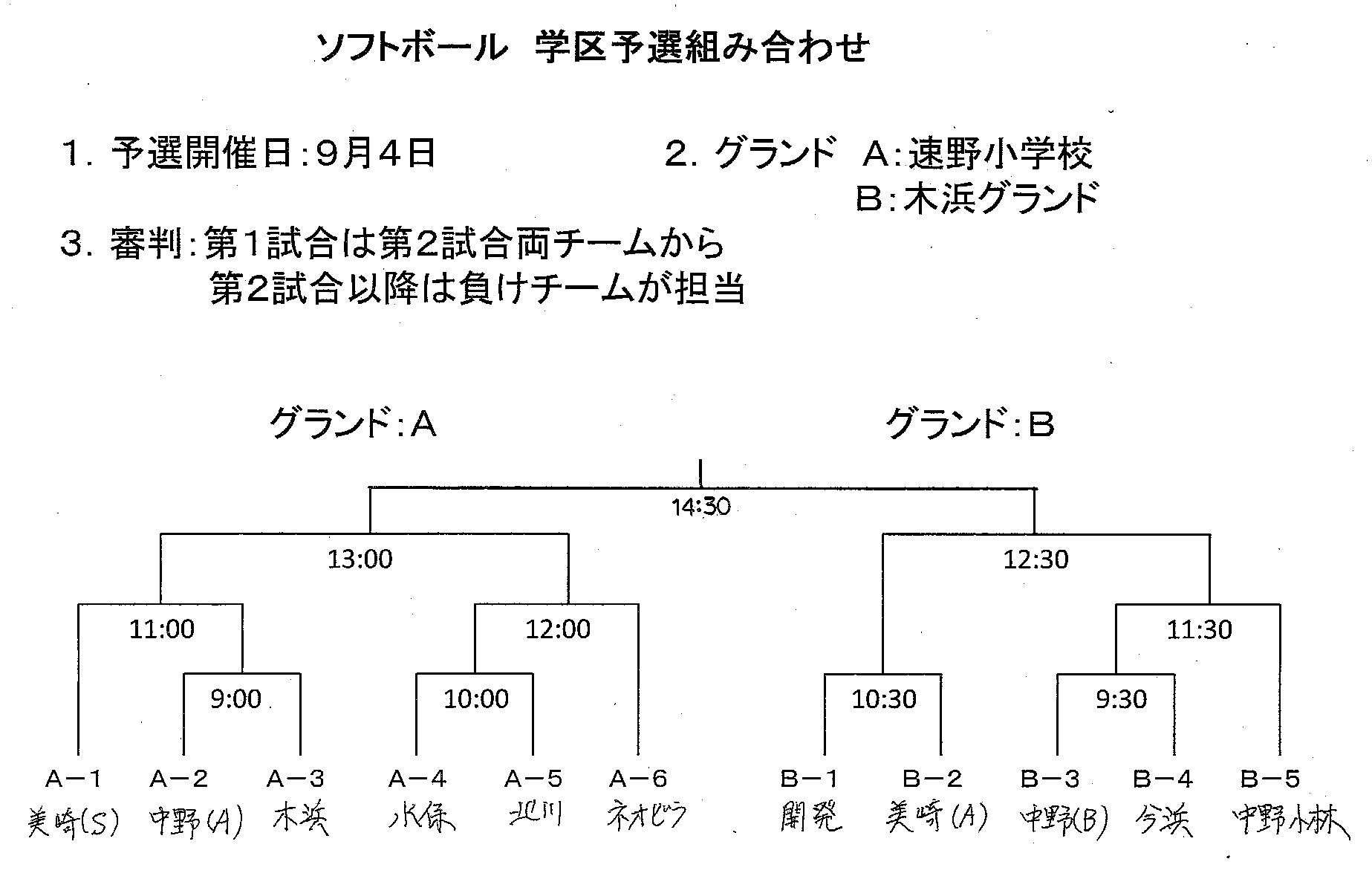 8月21日(日) 【第30回市民スポーツ大会】 速野学区予選 組み合わせ決定!!