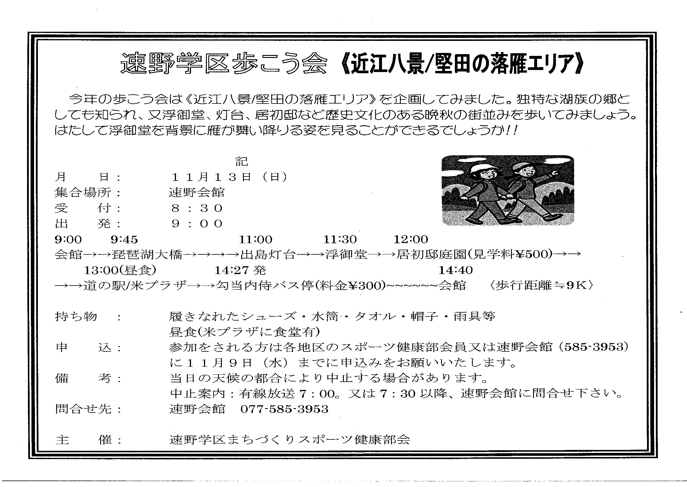 10月18日(火) 11/13(日) 速野学区歩こう会開催
