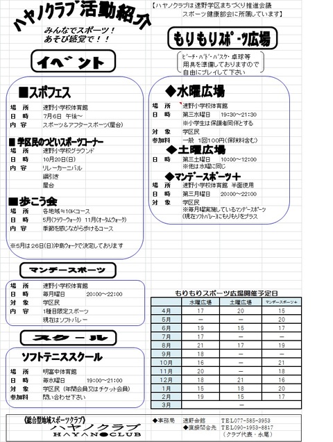 又、例年通りのイベントも実施予定です。たくさんの参加をお待ちしております。