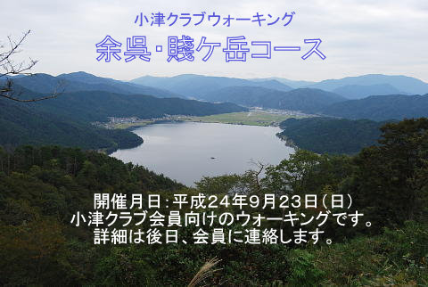9月23日(日) 小津クラブ ウォーキング(余呉・賤ケ岳コース)案内