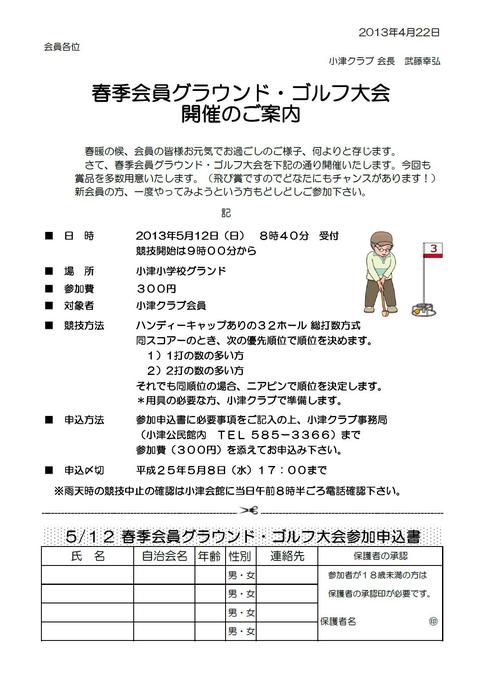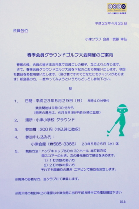 3月13日(日) 第10回小津学区長杯ゴルフ大会のご案内