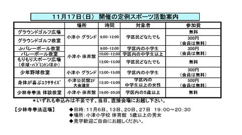 11月17日(日) 11月度 定例スポーツ活動のご案内