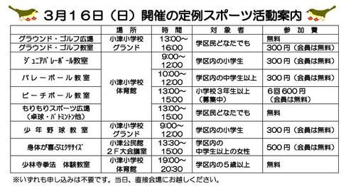 3月16日(日) 3月度 定例スポーツ活動のご案内