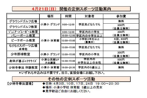 4月21日(日) 4月度 定例スポーツ活動のご案内