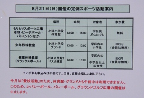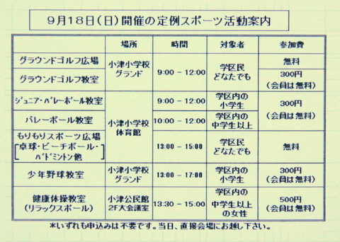 9月09日(日) 第7回小津学区長杯スポーツ大会 開催案内