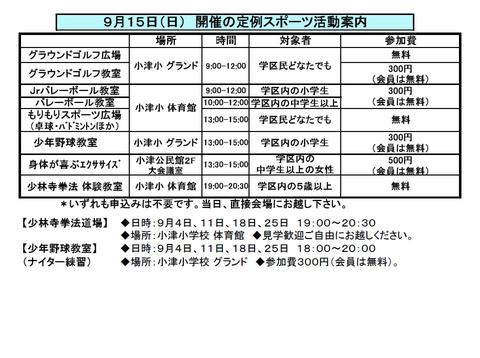 9月15日(日) 9月度定例スポーツ活動のご案内