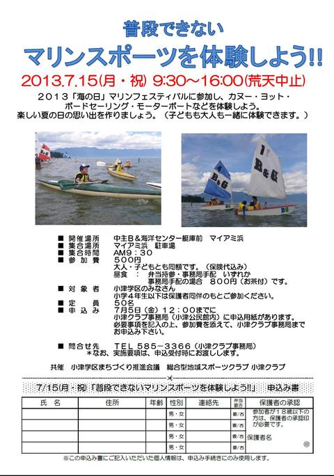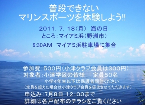 7月15日(月) 「普段できないマリンスポーツを体験しよう」ご案内
