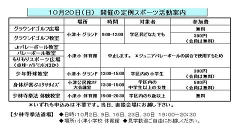 10月20日(日) 10月度 定例スポーツ活動のご案内