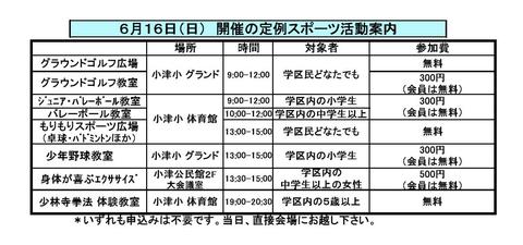 6月16日(日) 6月度定例スポーツ活動の案内