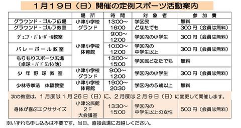 1月19日(日) 1月度 定例スポーツ活動のご案内