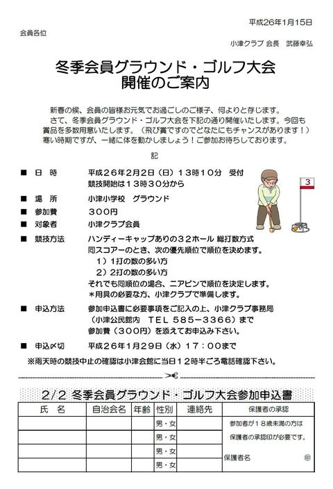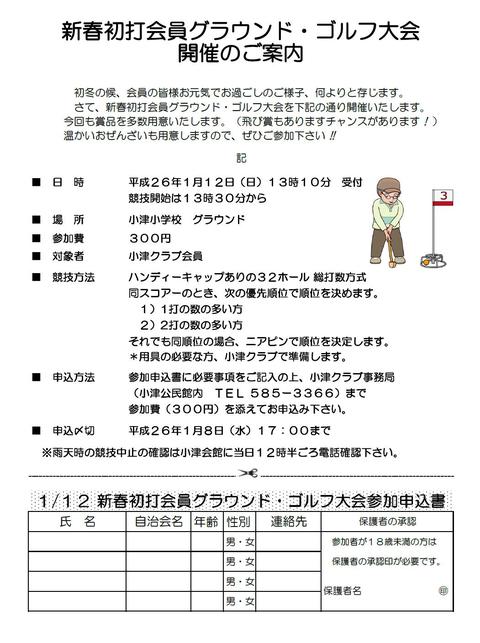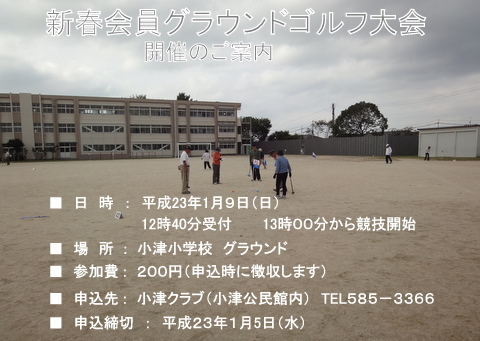 1月22日(日) 小津学区民グラウンドゴルフ大会のご案内