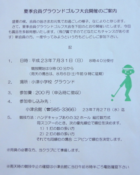 7月31日(日) 夏季会員グラウンドゴルフ大会開催の案内