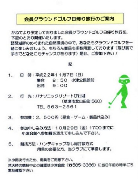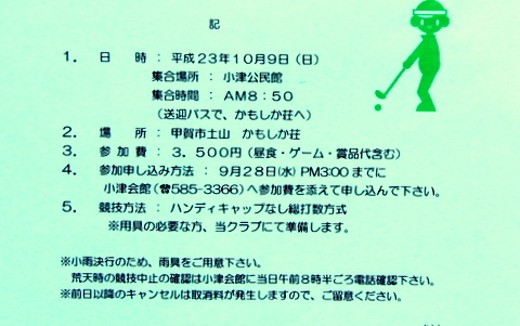 11月10日(水) 第9回小津学区長杯ゴルフコンペ開催の案内