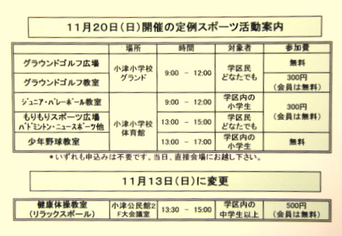 11月20日(日) 11月度 定例スポーツ活動のご案内