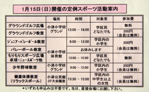 1月27日(日) 小津学区民グラウンド・ゴルフ大会の開催(案内)