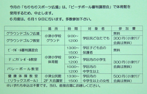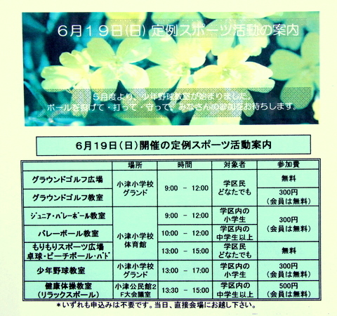 6月19日(日) 定例スポーツ活動の案内