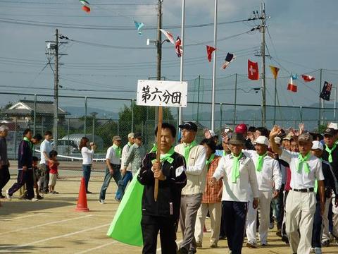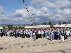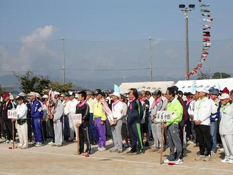 ↓選手入場後の整列。暑い日になりました。10月での気温30℃越えは珍しいそうです。昨日は学区民のつどいもあり連チャンです。みなさんほんとご苦労様です