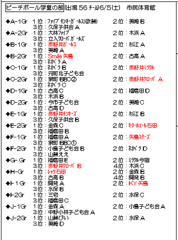 6/1: 子供+子供会関係者:45人 ボランティア審判さん:0人 体育指導員:4人