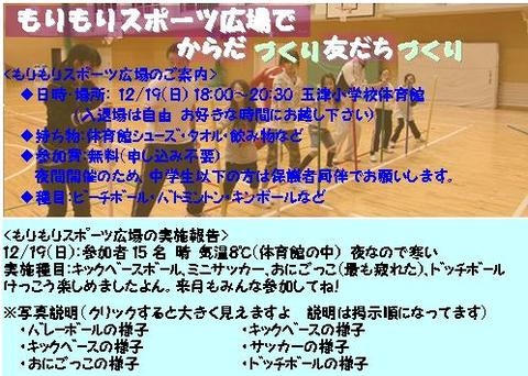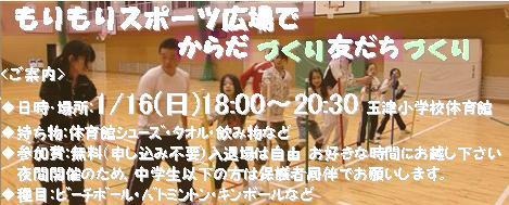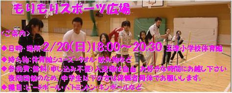 2月17日に、「もりもりスポーツ広場」が開催されました!今年度の最後の「もりもり」は、講師を招いてのシェイプアップ体操でした。約1時間にわたり、普段使わない筋肉を鍛える体操や、ゆったりとしたストレッチをしました。後半は、卓球、ペタンク、ビーンボーリングをしました。参加者のみなさん、当日お手伝いしてくだっさた役員のみなさんありがとうございました。来年度も「もりもりスポーツ広場」に参加してくださいね!よろしくお願いします!