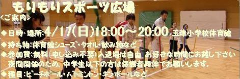 2009年度の第1回のもりもりスポーツ広場をおこないます。