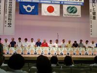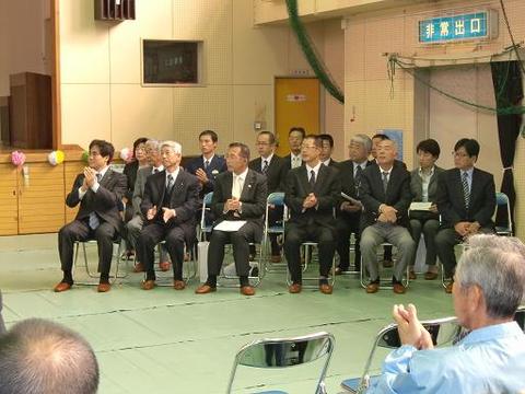 ↓プログラムナンバー1のラジオ体操です。市長はじめ、来賓の方々もラジオ体操をやって頂きました。檀上の岩佐さん間違えませんでしたか??