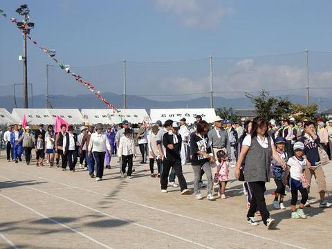 ↓玉津学区大運動会の40回を記念して特別に「栄光の架橋」の演奏をして頂きました(開会式)。みなさん聞き入ってました。ありがとうございました。