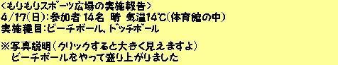 4月19日(日) 2009年4月もりもりスポーツ広場[グランドゴルフ]の報告