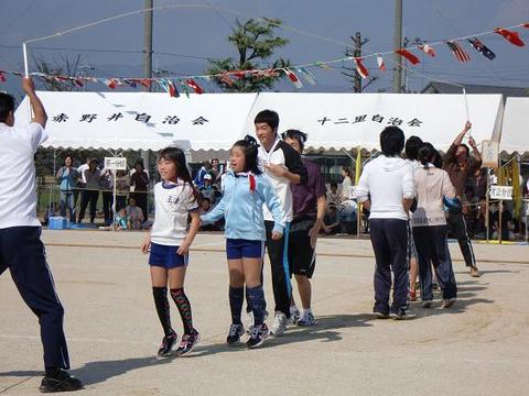 ↓しっぽとりゲーム(女子の部) 分団対抗リレーの代わりの新種目です 分団対抗で自分の分団以外のしっぽをいくつ取るかで勝負を決めます。