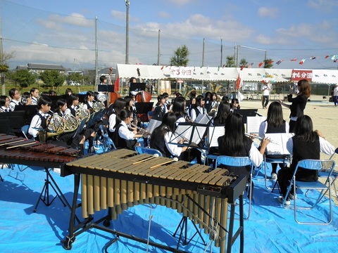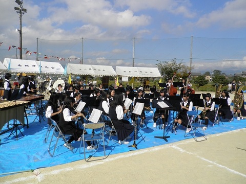 ↓玉津学区大運動会の40回を記念して特別に「栄光の架橋」の演奏をして頂きました(開会式)。みなさん聞き入ってました。ありがとうございました。