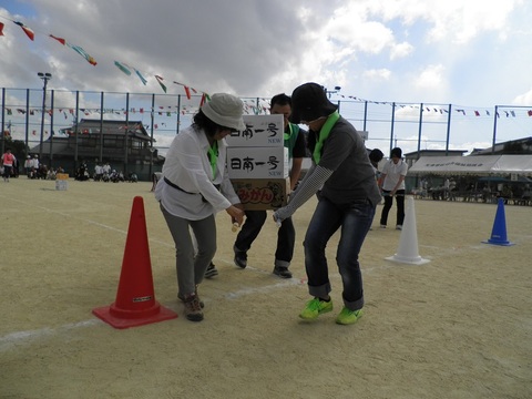 ↓おみこしワッショイ! これ新種目です 実はこれがなかなか難しい(泣!) 急ぐと崩れて落ちてしまうんですよね
