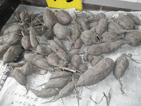 ↓2日前に少しとっておきました。芋ほり終了後にふるまうための芋料理のためです。すくすく育った無農薬の芋(というか、ほったらかしてただけですが・・)は美味しそうです。