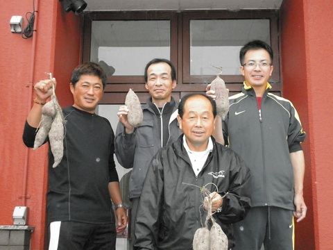 ↓スポーツ推進委員の広報誌に載せる(?)ための写真撮影です。とりあえずは、芋を手にニッコリ。