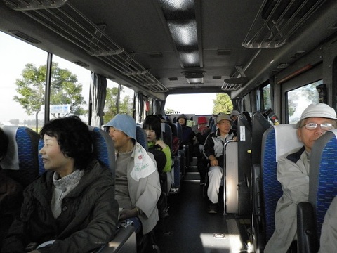 ↓玉津会館を8:30に出発。予定ではバス2台でしたが26名だったので1台にしました。