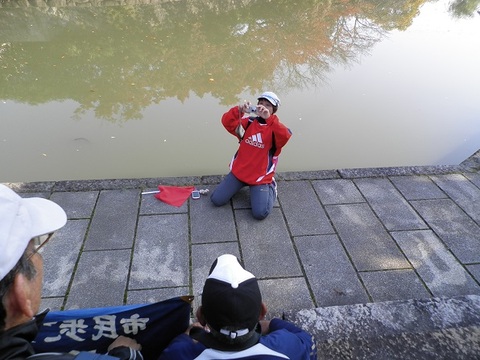 ↓玉津会館用の撮影。たまには撮影者も撮ってあげましょう。堀に落ちそうになってますが・・