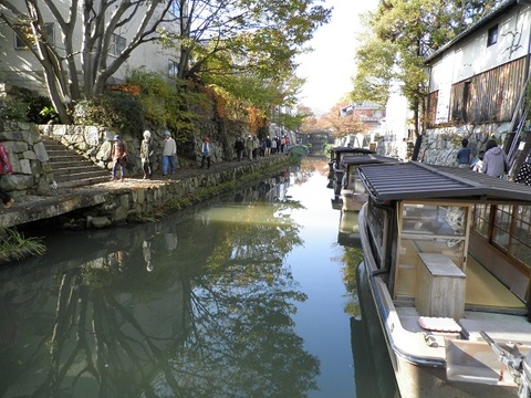↓八幡堀沿いに歩きました。紅葉のシーズンでもありとても気持ちよかったです