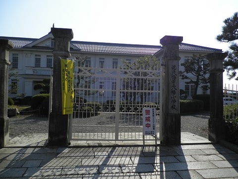 ↓近江八幡市立八幡小学校の前を歩きました。11:10ぐらい。校舎もブォーリース建築風なんですよね。思わず写真とりました。